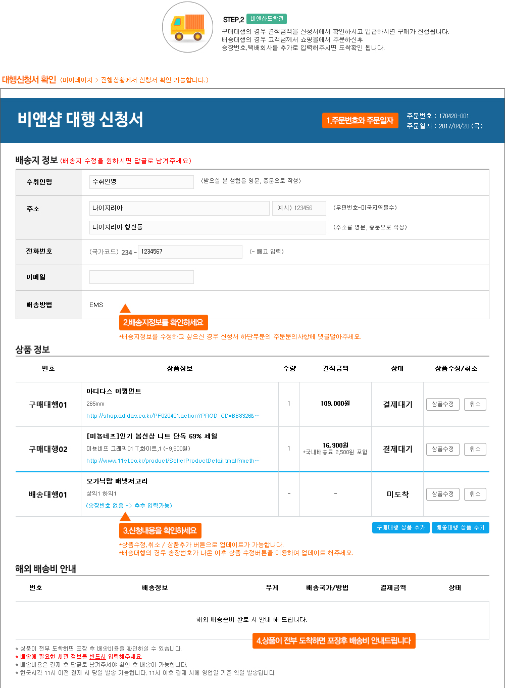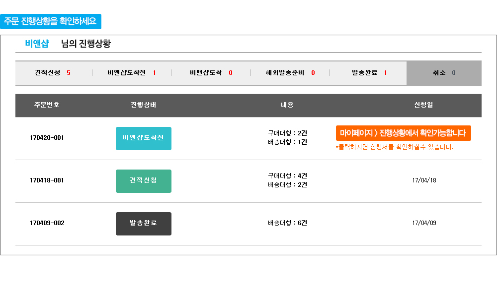 장바구니에 구매대행, 배송대행을