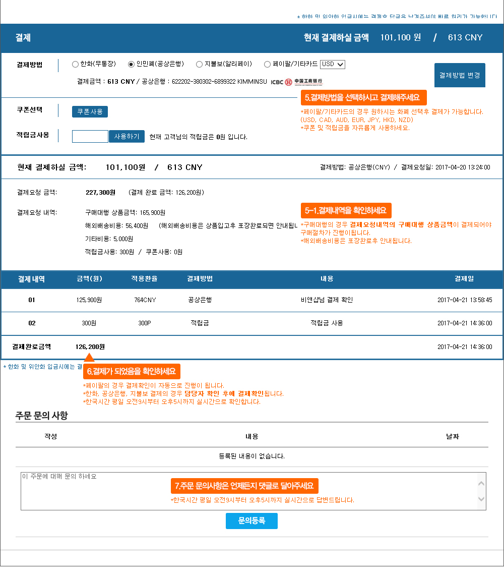 여기서 같이 지불해주시면 됩니다.